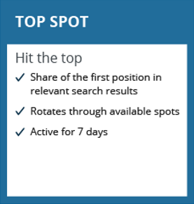 Top Spot forms part of our listing depth offering, enabling you to share in the number one position of relevant search results i.e. the top of a list or the top, left-hand side of a grid.