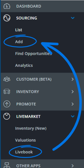 - LiveBook tab → now located under Sourcing > Add