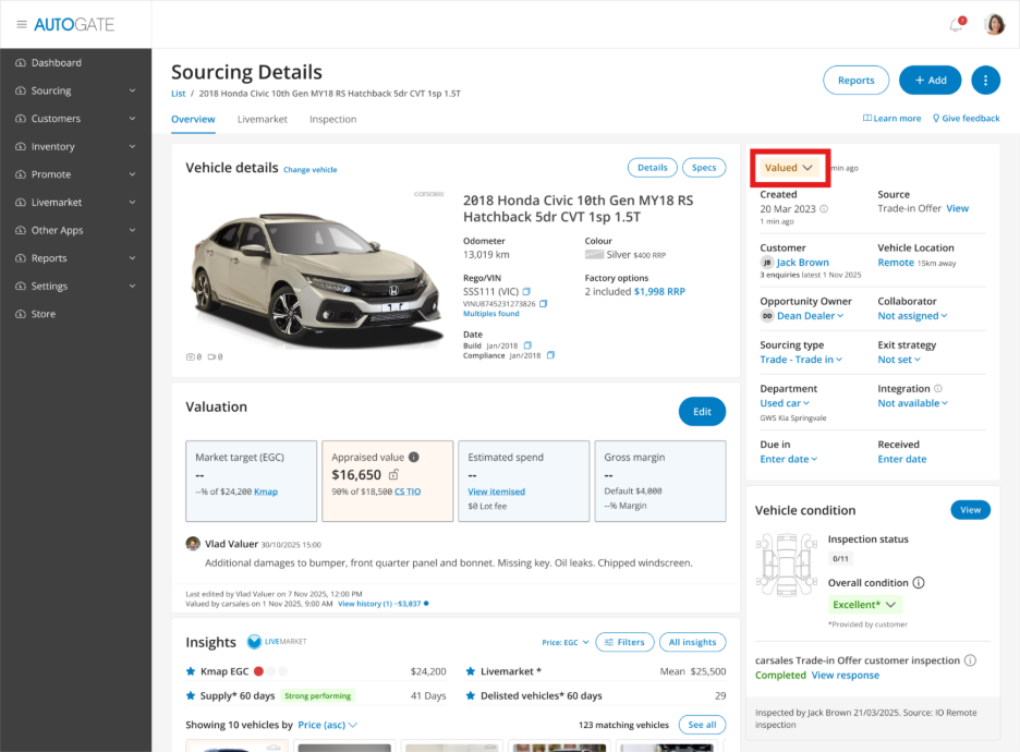 - Go to Customer page → Sourcing (Trade-In section) → Click ‘View’