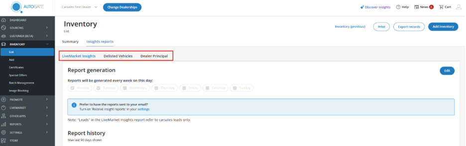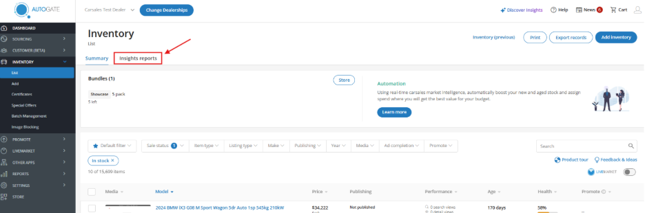 Previously, Insights Reports were only in LiveMarket. Now, you’ll also find them in Inventory > List > Insights Reports tab.