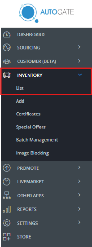 - Select List under Inventory in the main menu