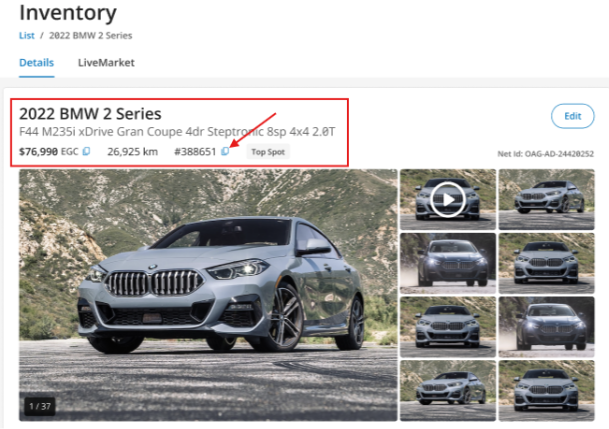 - Find the vehicle you’d like to view and click the make/model to open the Inventory Details page