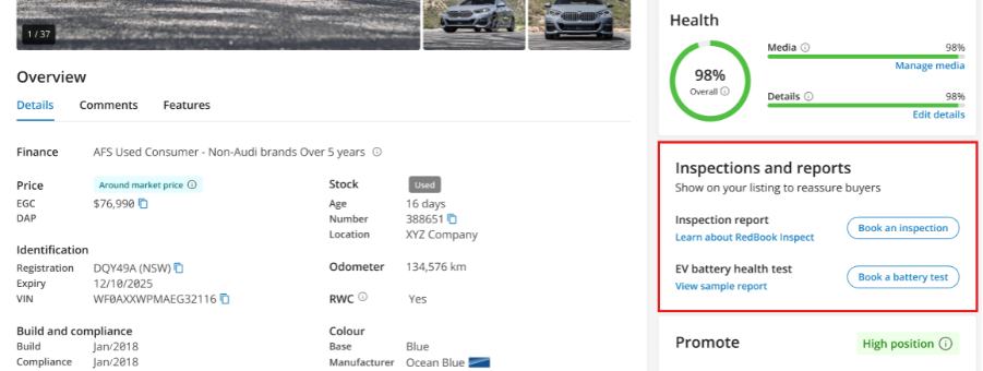 These inspections are carried out by a qualified professional through Redbook Inspect and assess key aspects of the vehicle, including performance, safety features, and overall condition.
