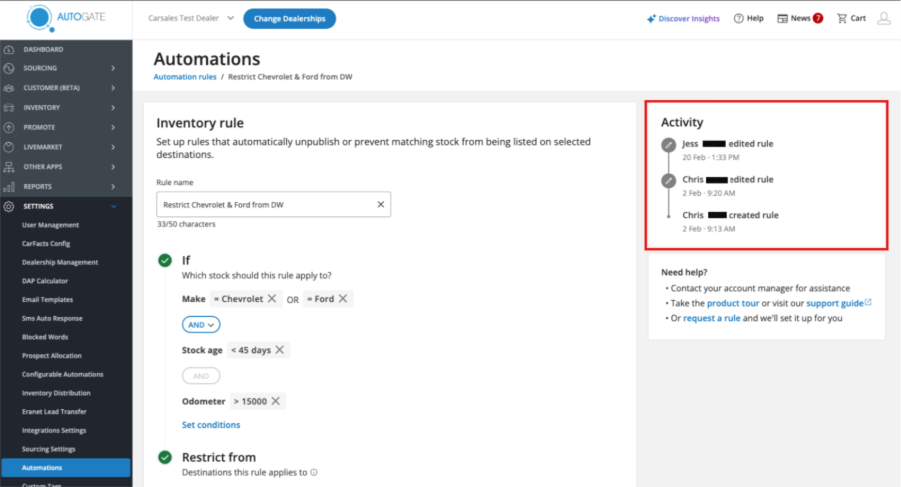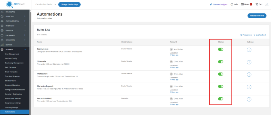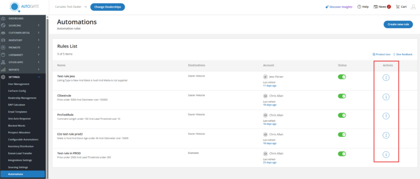 - Dealers can create, edit, and manage rules directly in AutoGate
