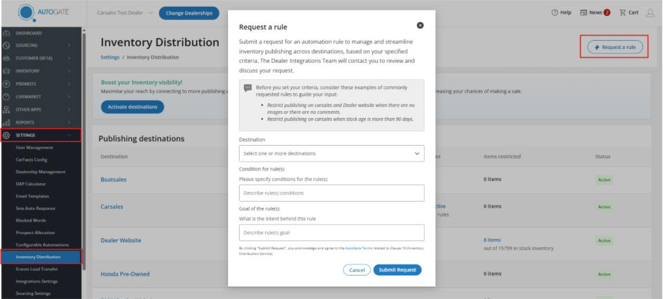 - You had to submit a request to the carsales dealer support team to create, edit, or remove distribution rules