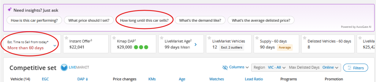 LiveMarket Estimated Time to Sell in AutoGate has been updated to give you clearer, more actionable insights into how quickly your vehicles are likely to sell and what steps you can take next.