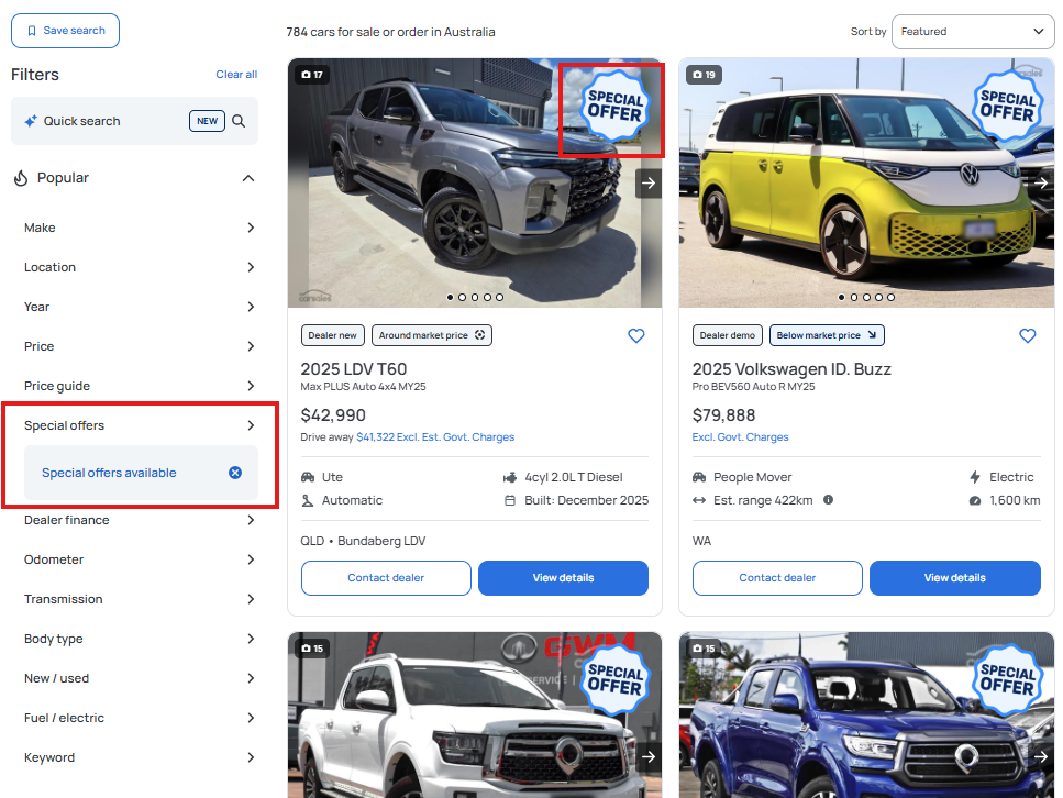 OEM-sourced Special Offers can be applied to eligible newcar listings to help them stand out on carsales and encourage more confident buyer enquiries.