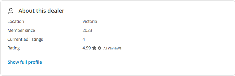 Once your Podium account is integrated with carsales and you have toggled on Dealer Reviews within AutoGate, your inventory items will begin to display your aggregated review score. This aggregated score will appear on the details page (as seen below).